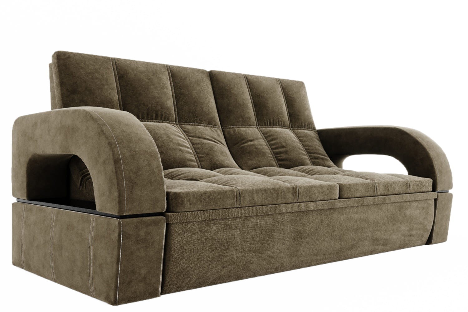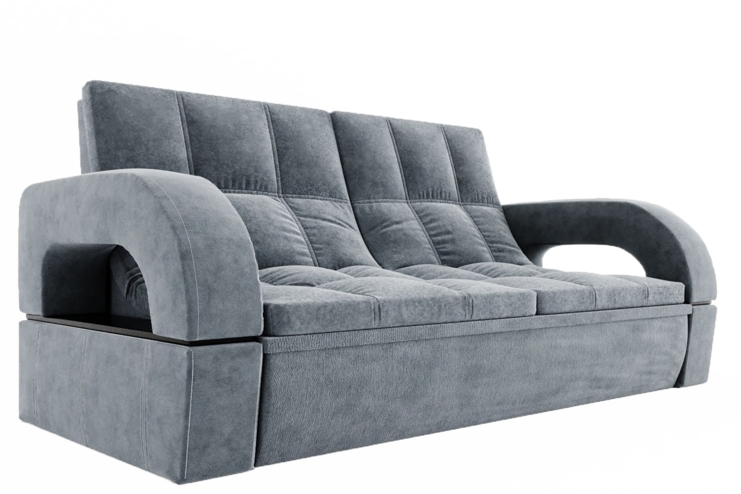 Особенности дивана: Каркас: ЛДСП, фанера, брус. Эргономичная мебель, позволяющая создать стильный интерьер. Обит качественным и плотным текстилем. Опорные элементы каркаса помогают равномерно распределять вес, благодаря чему напольное покрытие не продавливается. Механизм трансформации позволяет быстро и без особых напряжений превратить диван в удобное спальное место.